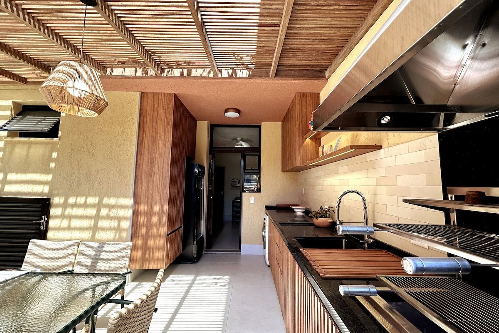 - Area preservada com pergolado - Geladeira especial para bebidas - Churrasqueira e todos utensílios necessários Além disso oferecemos: - Mais 4 cadeiras e 1 guarda sol se necessário na casa - lençóis de cama - toalhas de banho, piso e rosto Precisa trazer: - toalhas de praia/ piscina PETS: Infelizmente o condomínio não aceita pets. - Caso haja o descomprimento o hóspede poderá ser multado por parte do condomínio