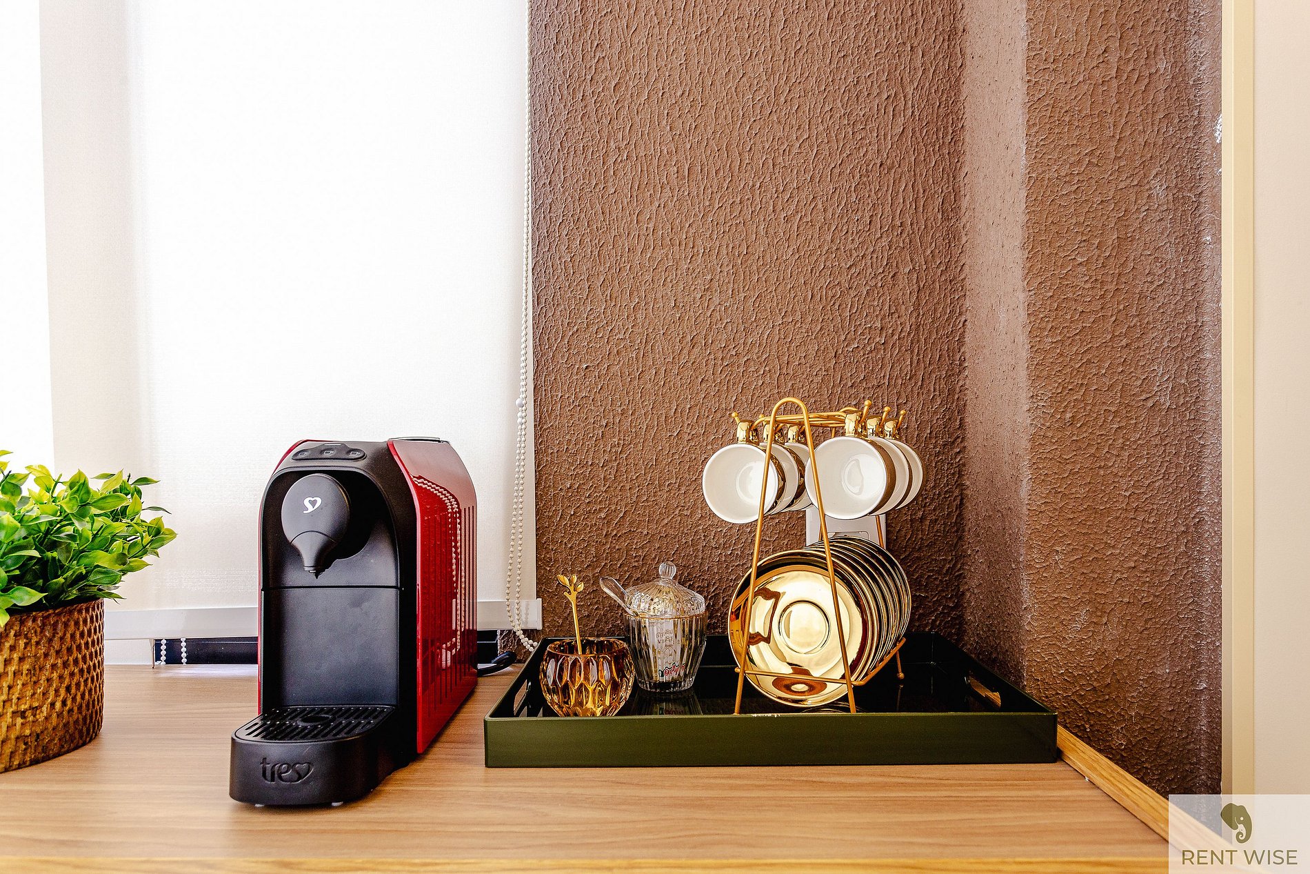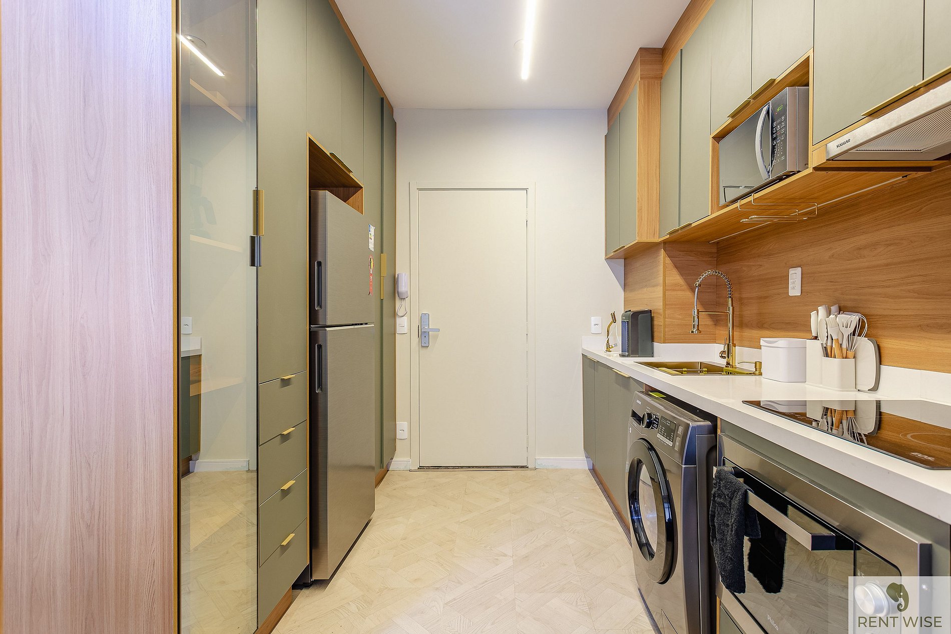 * Cozinha completa, equipada com geladeira, micro-ondas, fogão cooktop, forno, airfryer e todos os utensílios necessários para preparar suas refeições