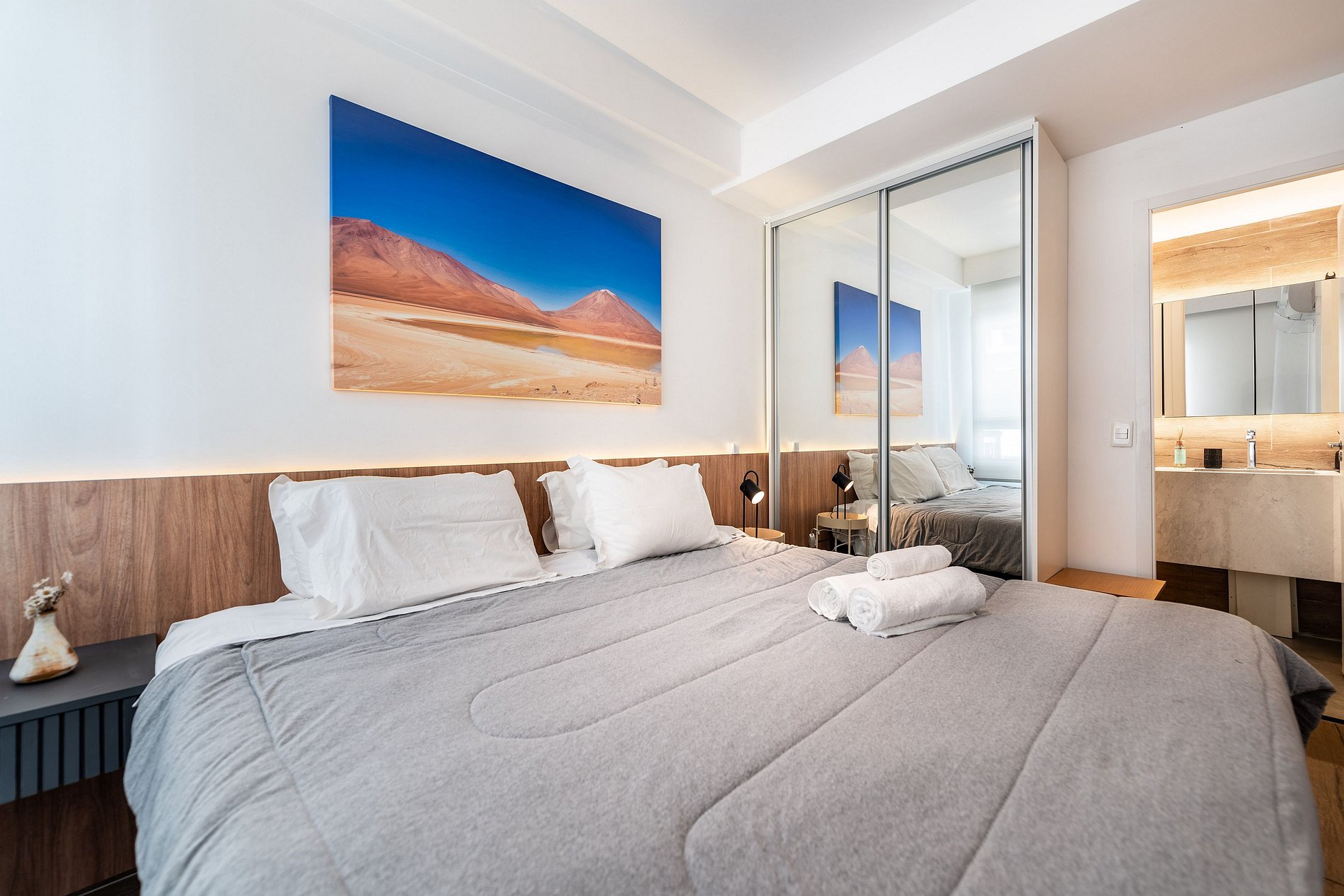 * Cama de casal com lençóis de alta qualidade para uma noite de sono perfeita