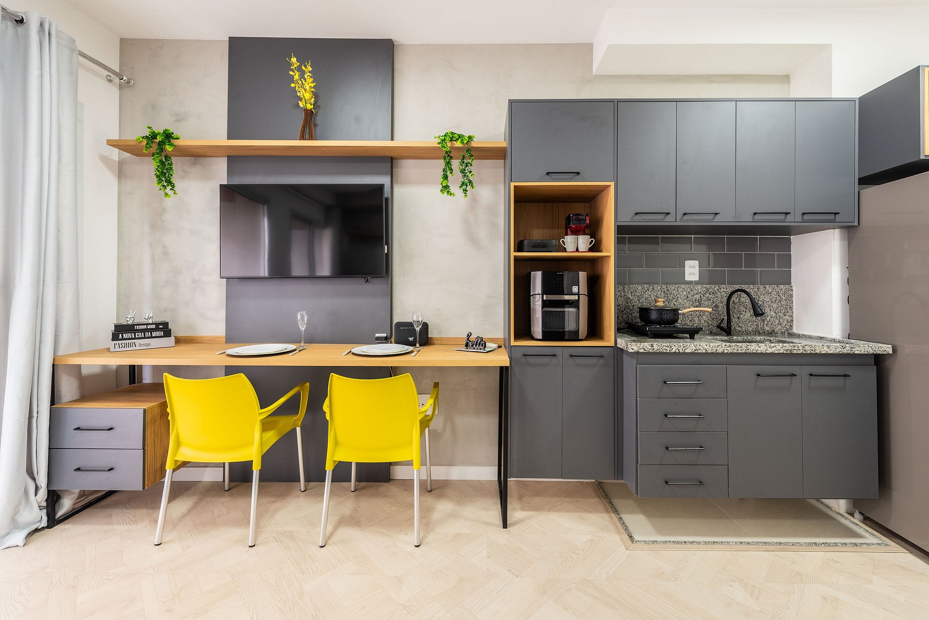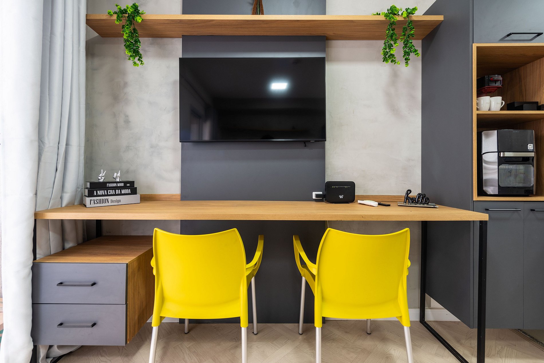 * Um espaço de trabalho com Wi-Fi de alta velocidade, ideal para quem precisa conciliar lazer e trabalho
