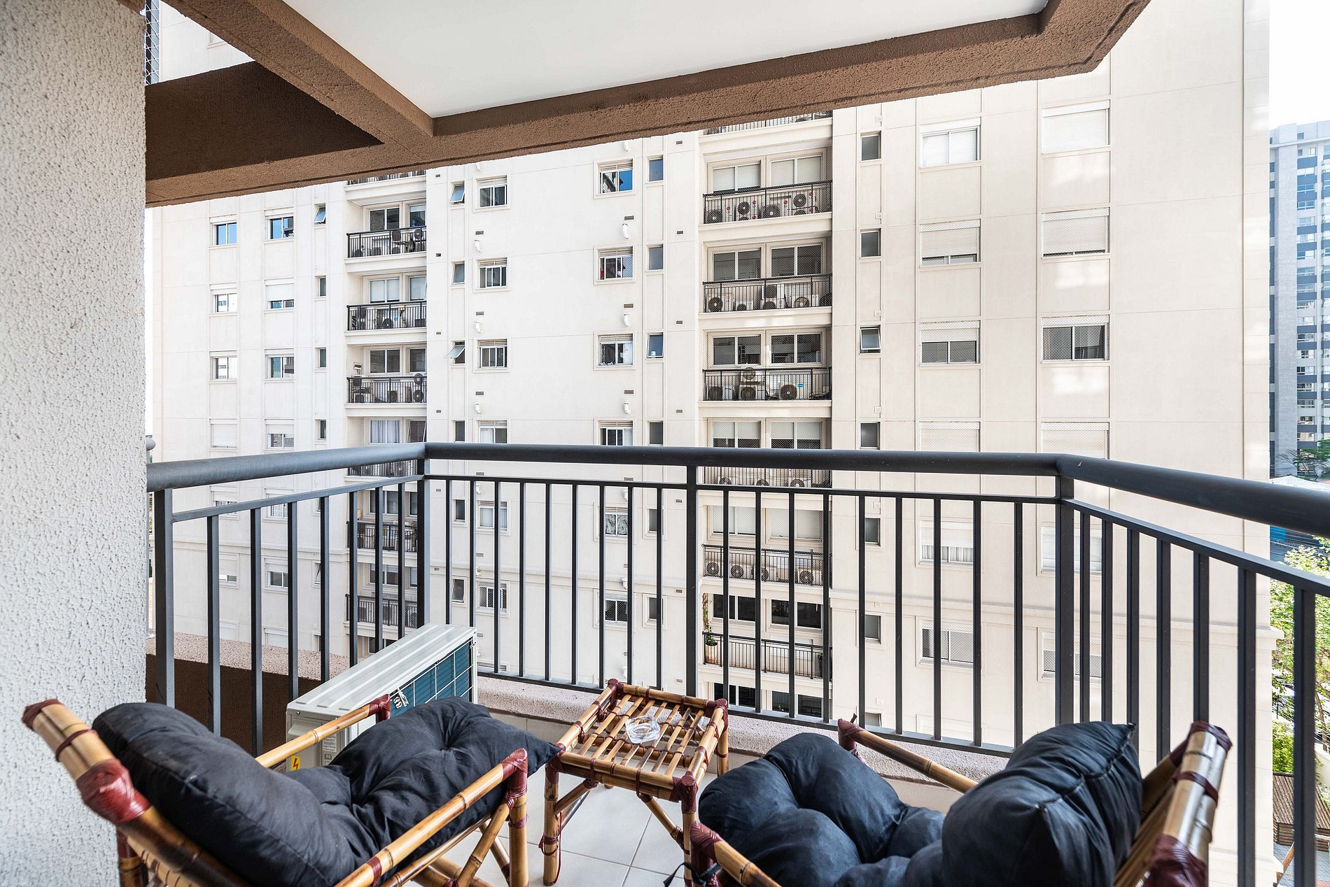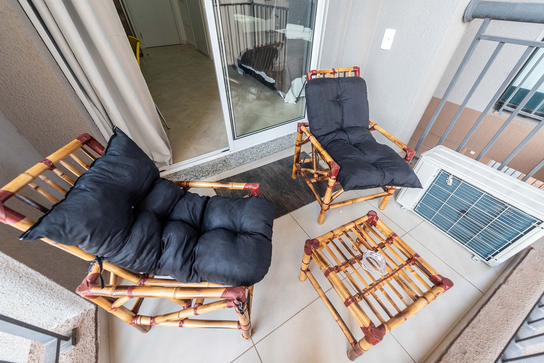 * Varanda aconchegante para relaxar após um dia de passeios ou trabalho