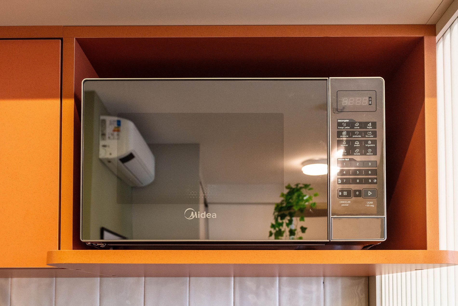 * Cozinha completa, equipada com geladeira, micro-ondas, fogão cooktop e todos os utensílios necessários para preparar suas refeições
