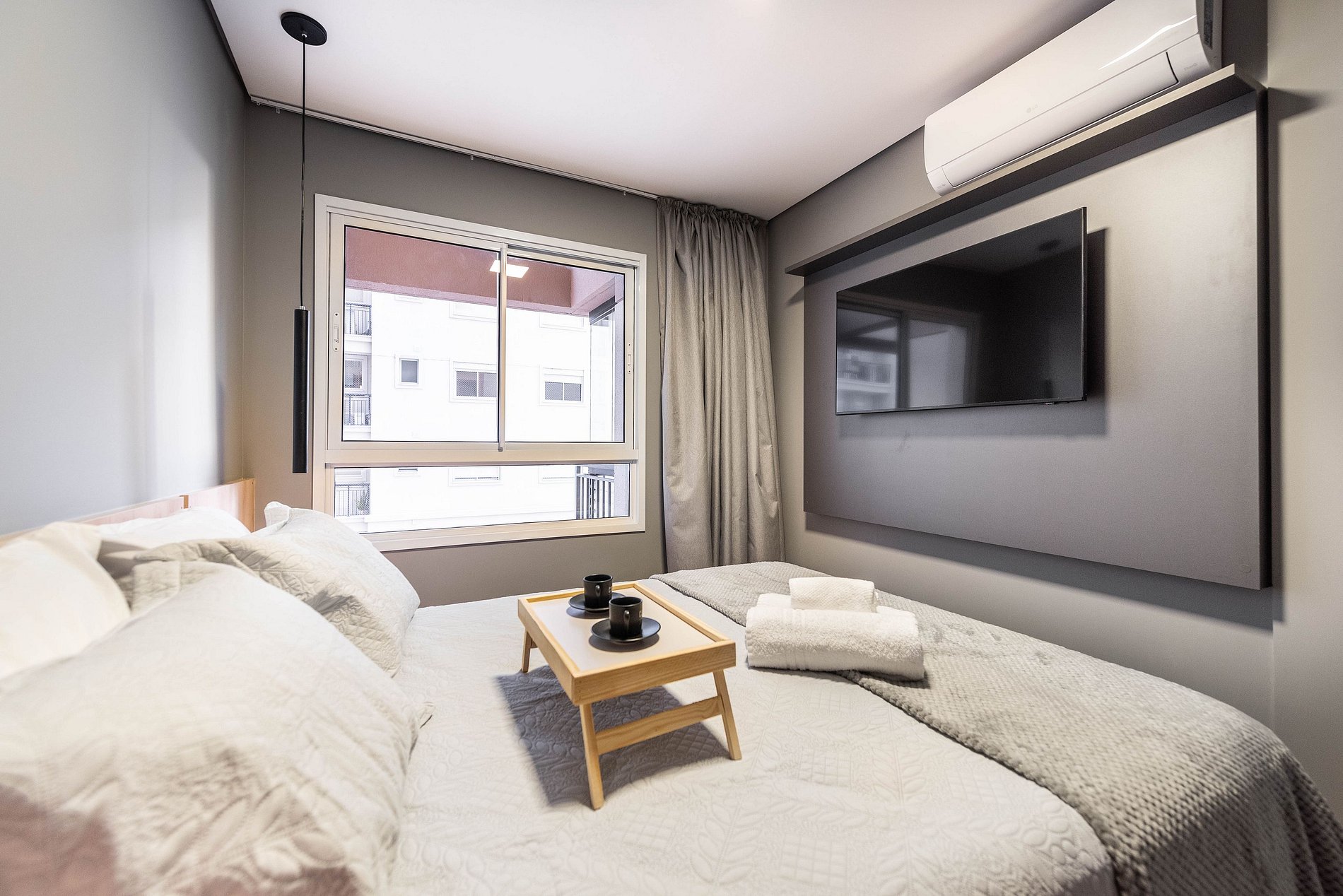 * Cama de casal com lençóis de alta qualidade para uma noite de sono perfeita * Roupas de cama e toalhas sempre limpas e cheirosas, além de amenidades como shampoo, condicionador e sabonete para sua comodidade * Cozinha completa, equipada com geladeira, micro-ondas, fogão cooktop, airfyer e todos os utensílios necessários para preparar suas refeições * Wi-Fi de alta velocidade, ideal para quem precisa conciliar lazer e trabalho * TV Smart full-HD de alta definição com canais abertos e serviços de streaming * Filtro de água * Uma varanda aconchegante para relaxar após um dia de passeios ou trabalho * Janelas com rede de proteção para crianças * Disponibilidade de berço portátil * Academia moderna e recém construída * Lavanderia prática e de fácil acesso para sua conveniência * Churrasqueira para momentos de lazer (permitido o uso apenas para os hóspedes cadastrados) * Próximo aos metrôs Vila Mariana, Santa Cruz e Chácara Klabin, te conectando à cidade inteira! * Próximo ao icônico Parque Ibirapuera e consulado americano