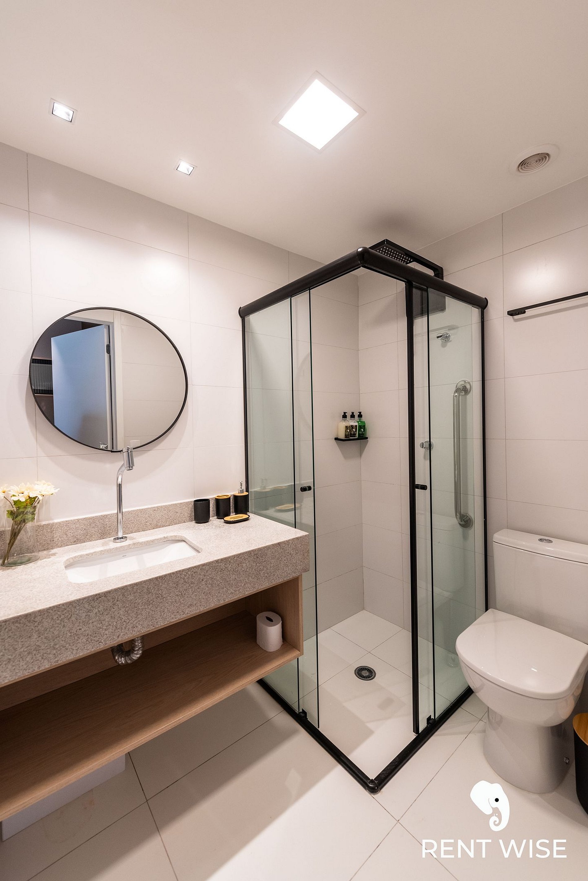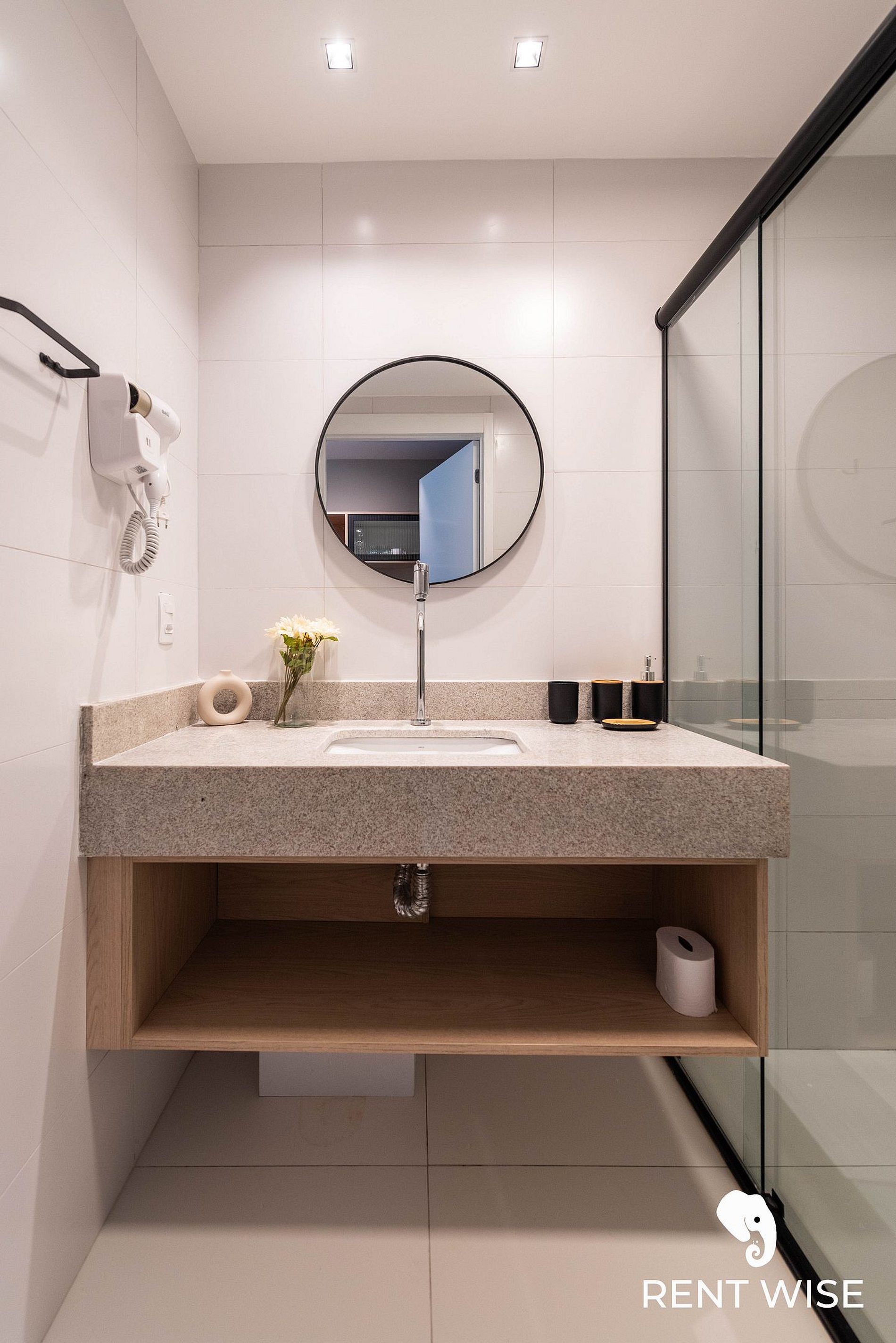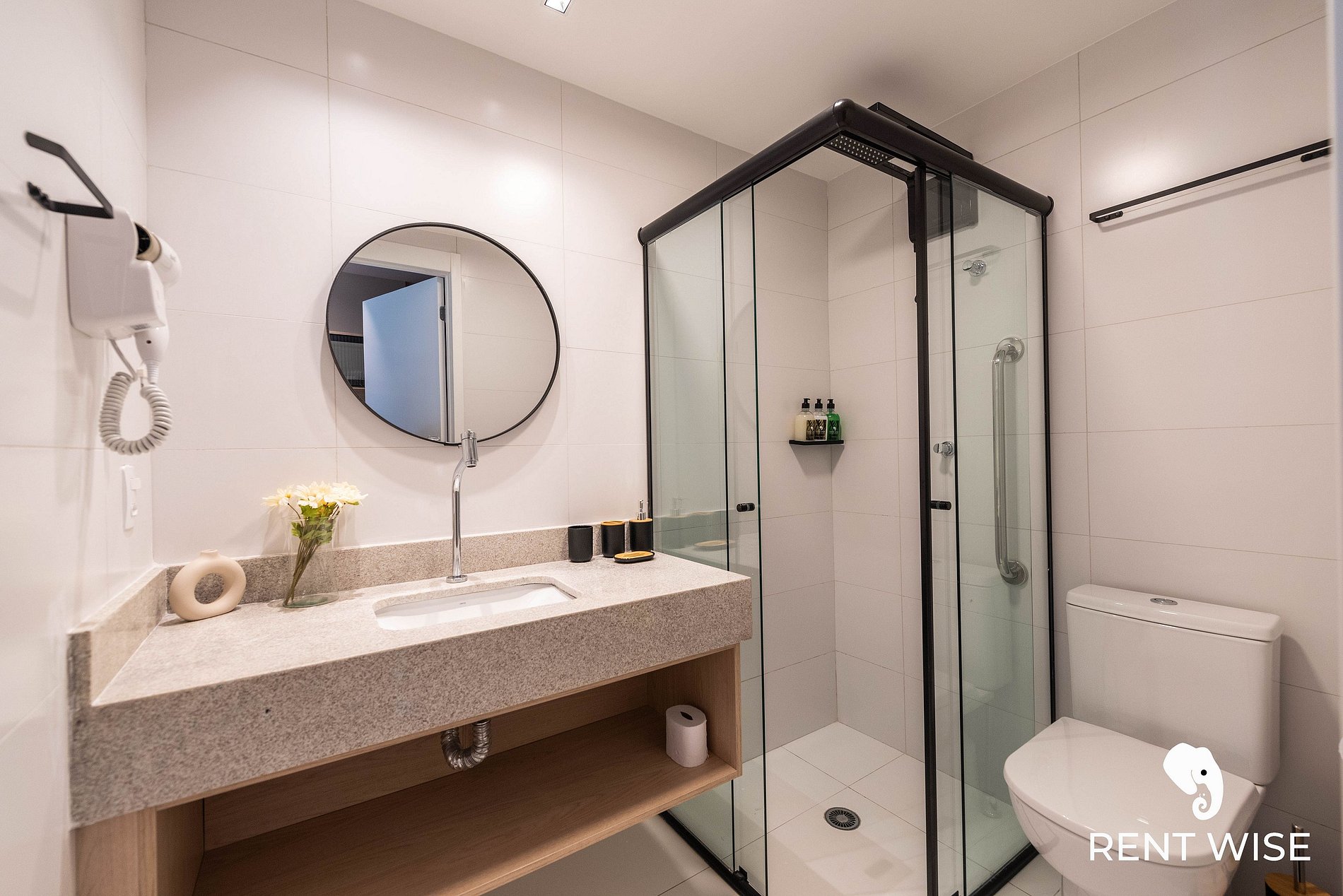 - Itens básicos de banheiro como secador de cabelo, shampoo, condicionador e sabonete para sua comodidade