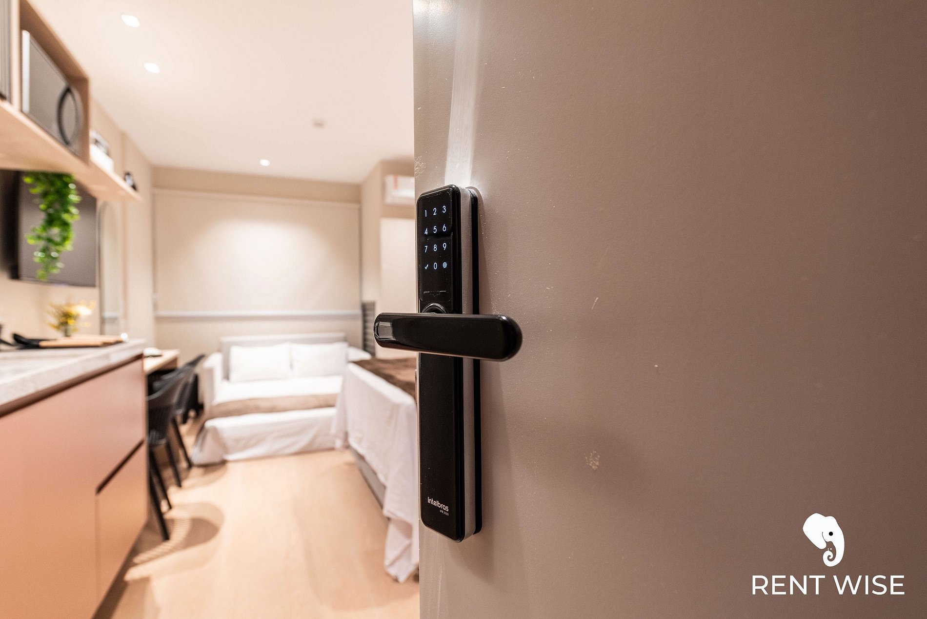 Nosso espaço conta com uma portaria eletrônica, o acesso ao prédio é feito através da liberação via equipamento de reconhecimento facial. É de extrema importância que o hóspede envia um documento com foto e uma fotografia do rosto para o cadastro da facial, que permite a entrada e saída do edifício.