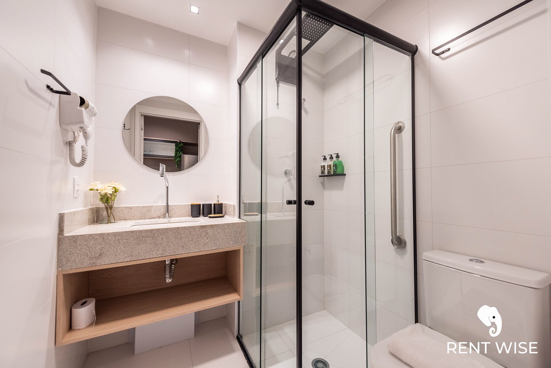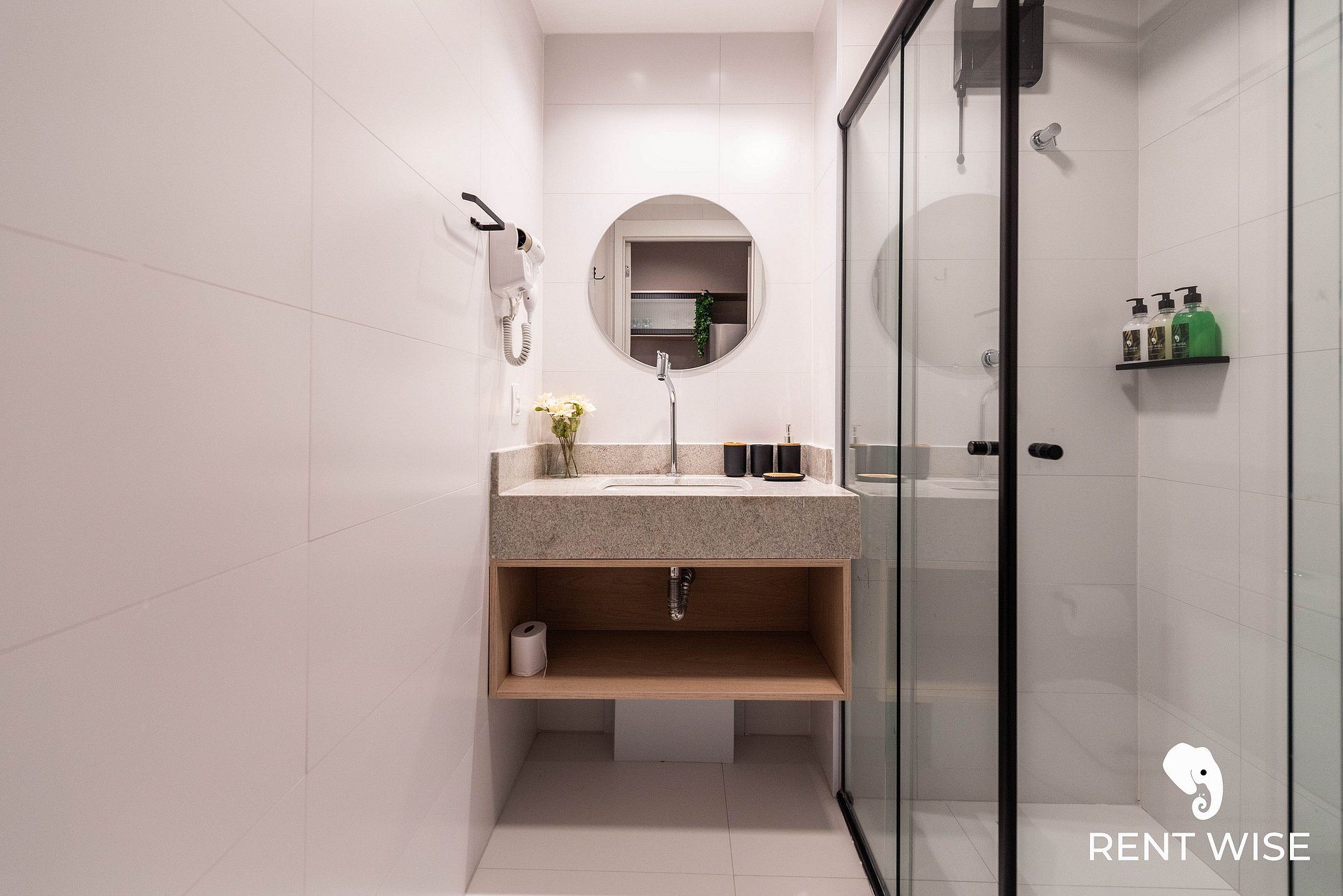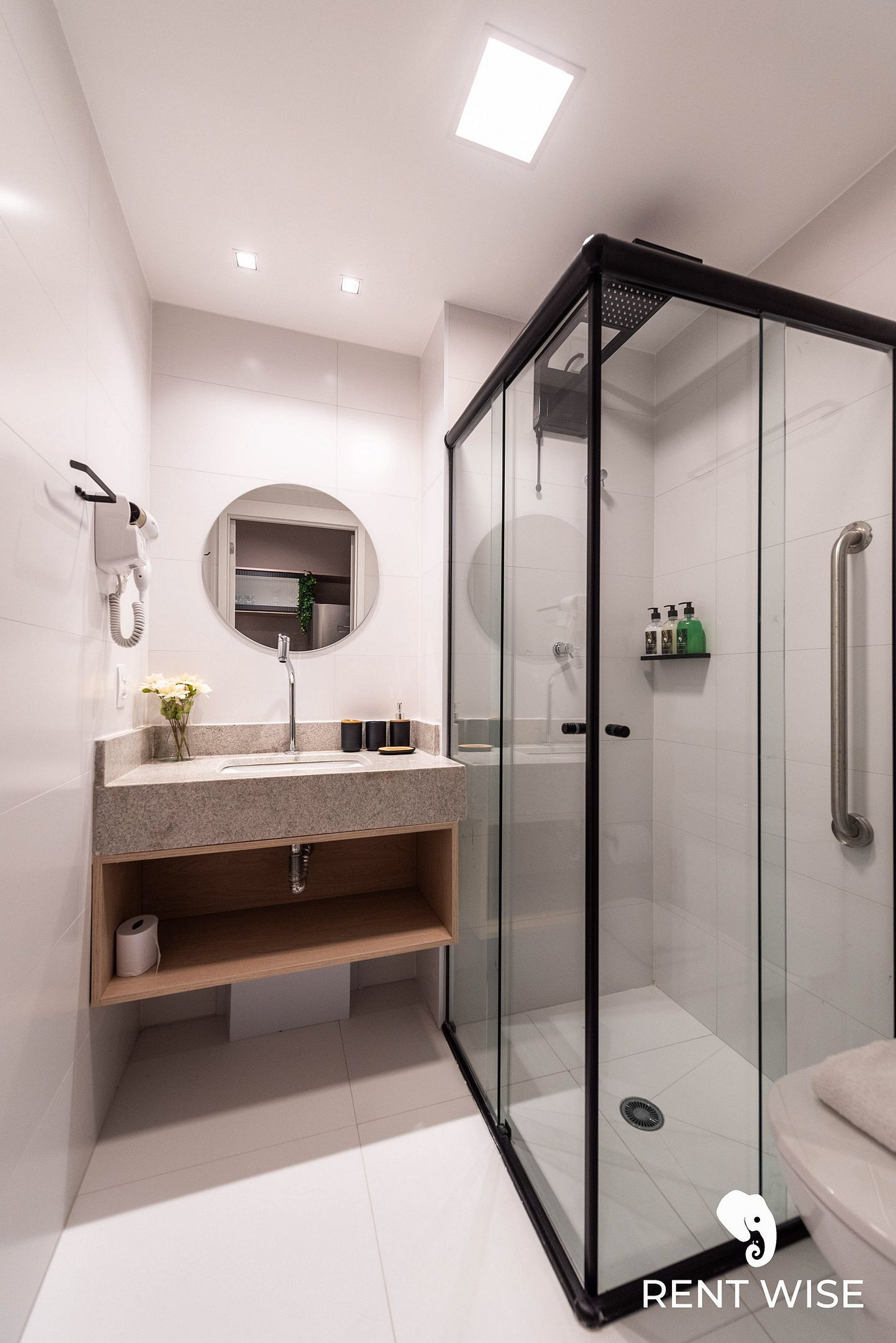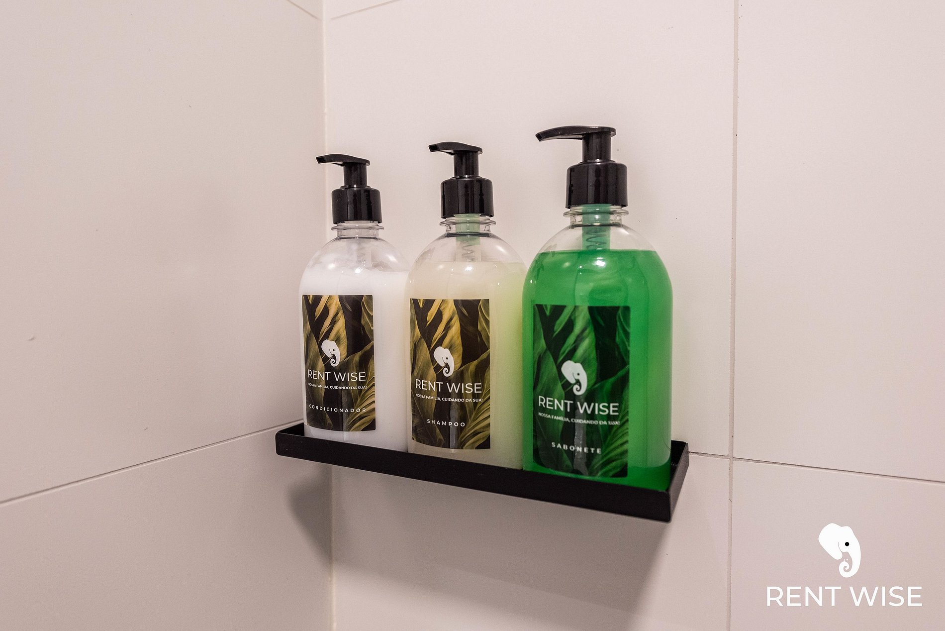 - Itens básicos de banheiro como secador de cabelo, shampoo, condicionador e sabonete para sua comodidade