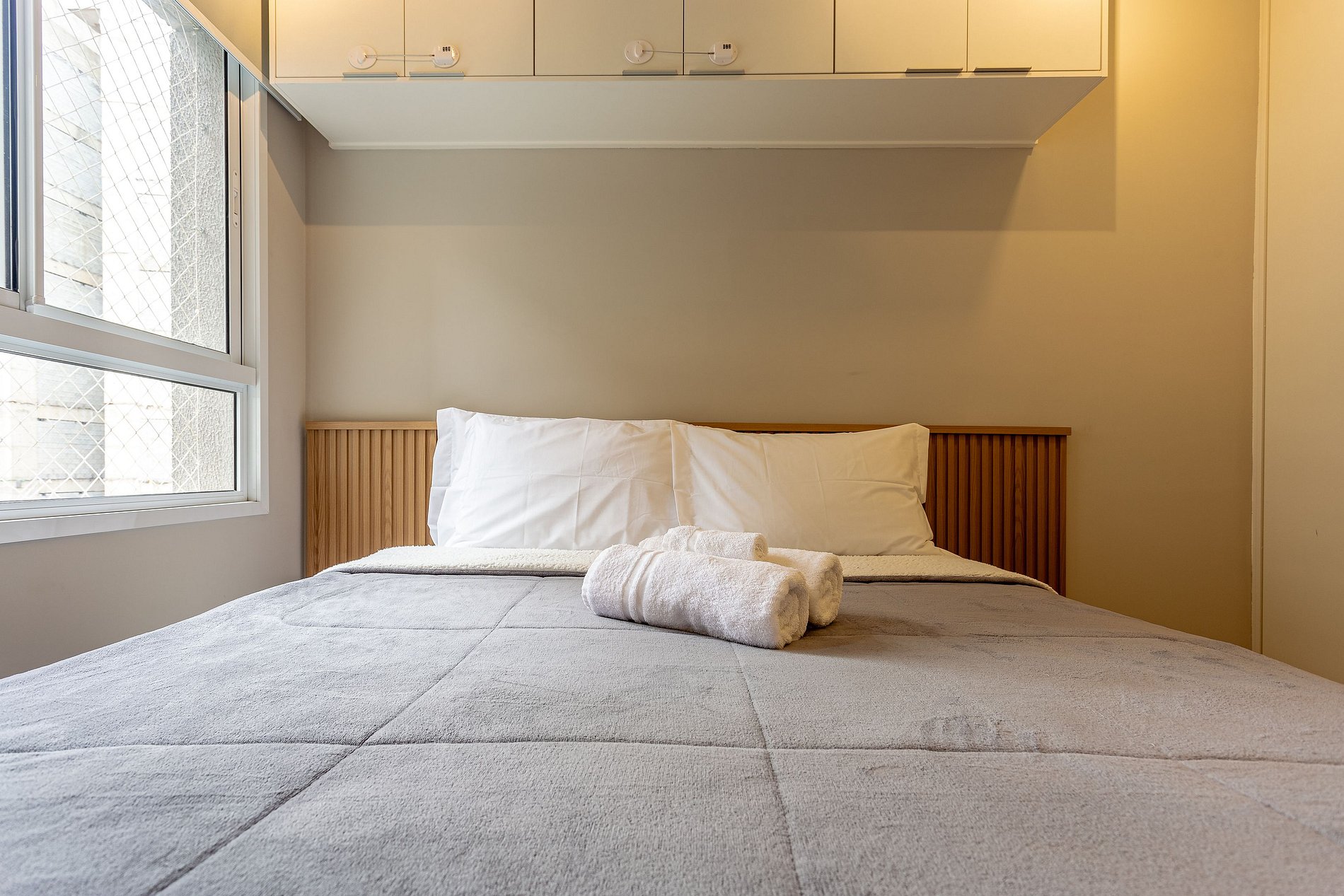 * Cama de casal com lençóis de alta qualidade para uma noite de sono perfeita