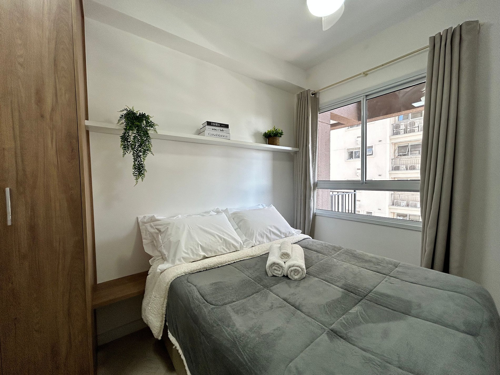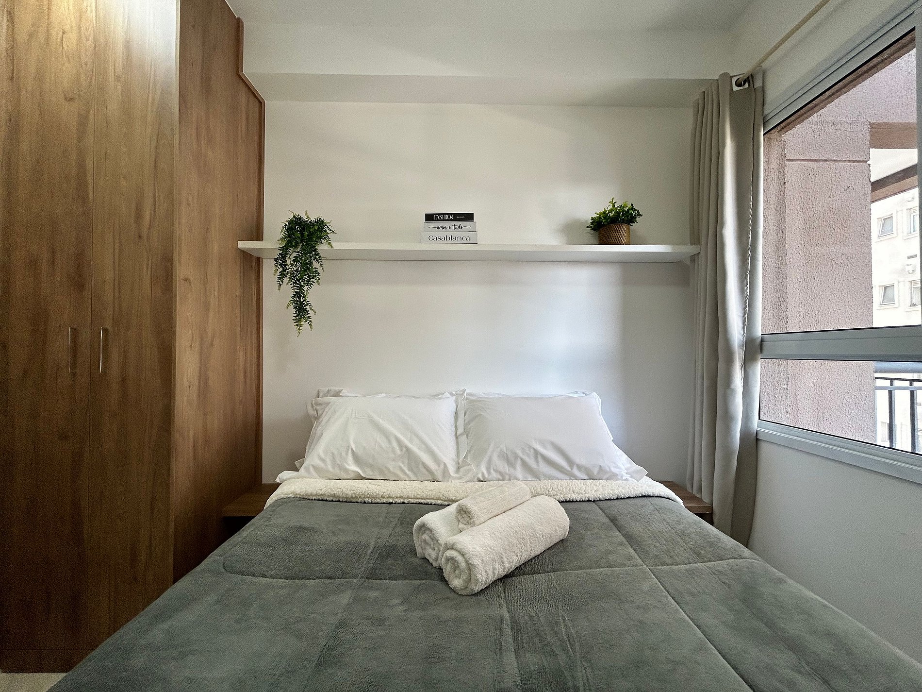 * Cama de casal com lençóis de alta qualidade para uma noite de sono perfeita