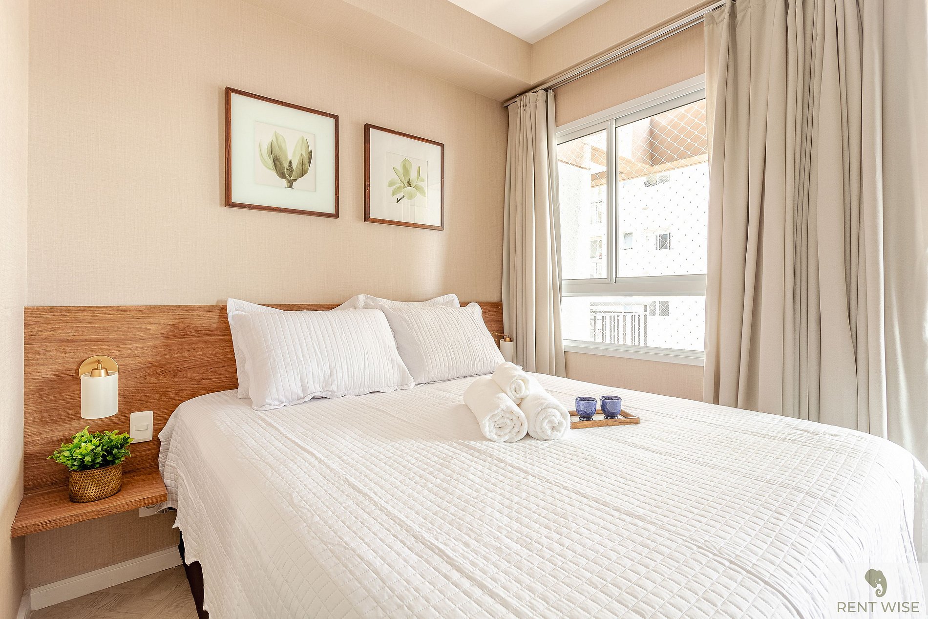 * Cama de casal com lençóis de alta qualidade para uma noite de sono perfeita