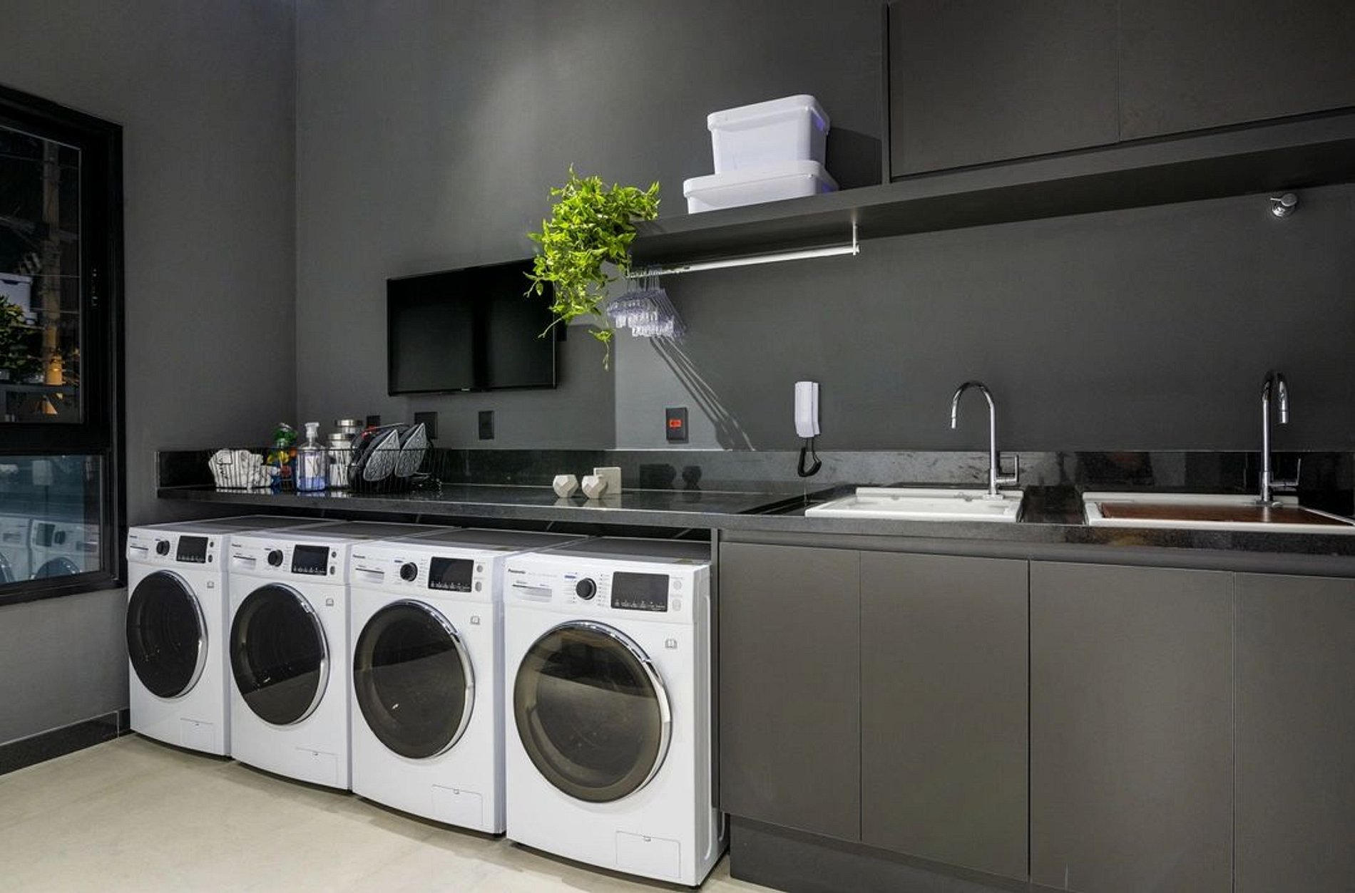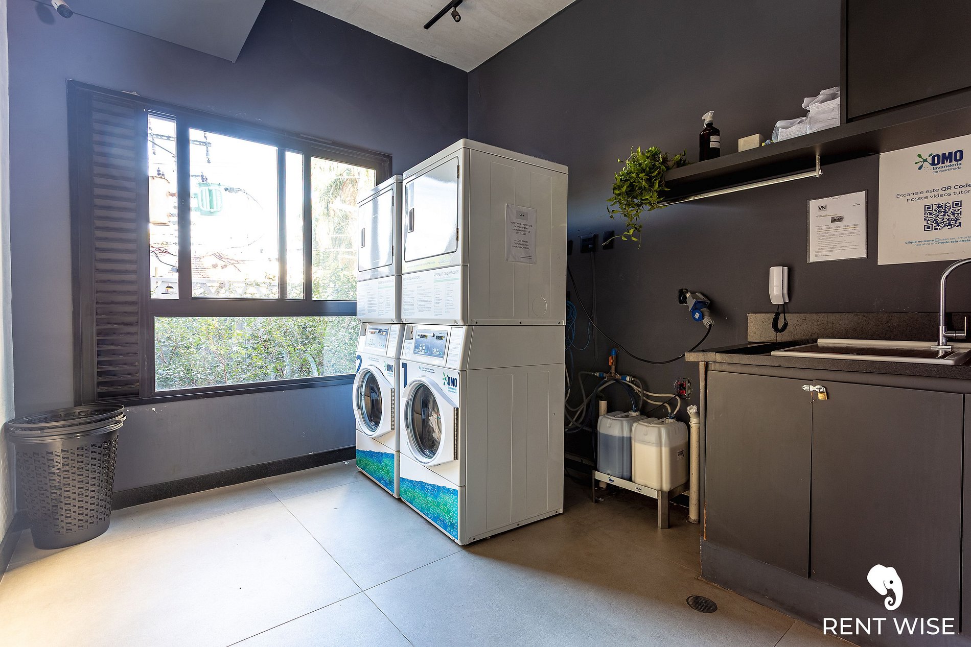 - Lavanderia compartilhada com máquinas modernas.