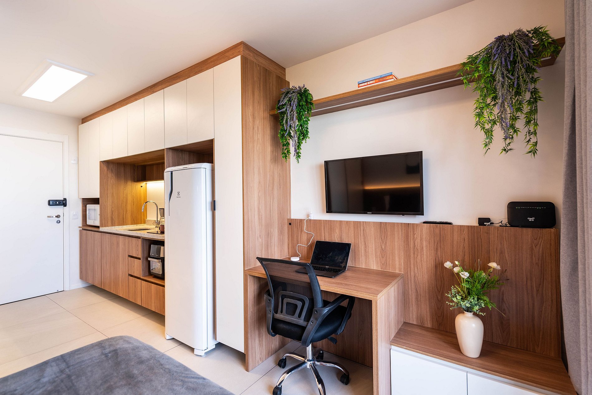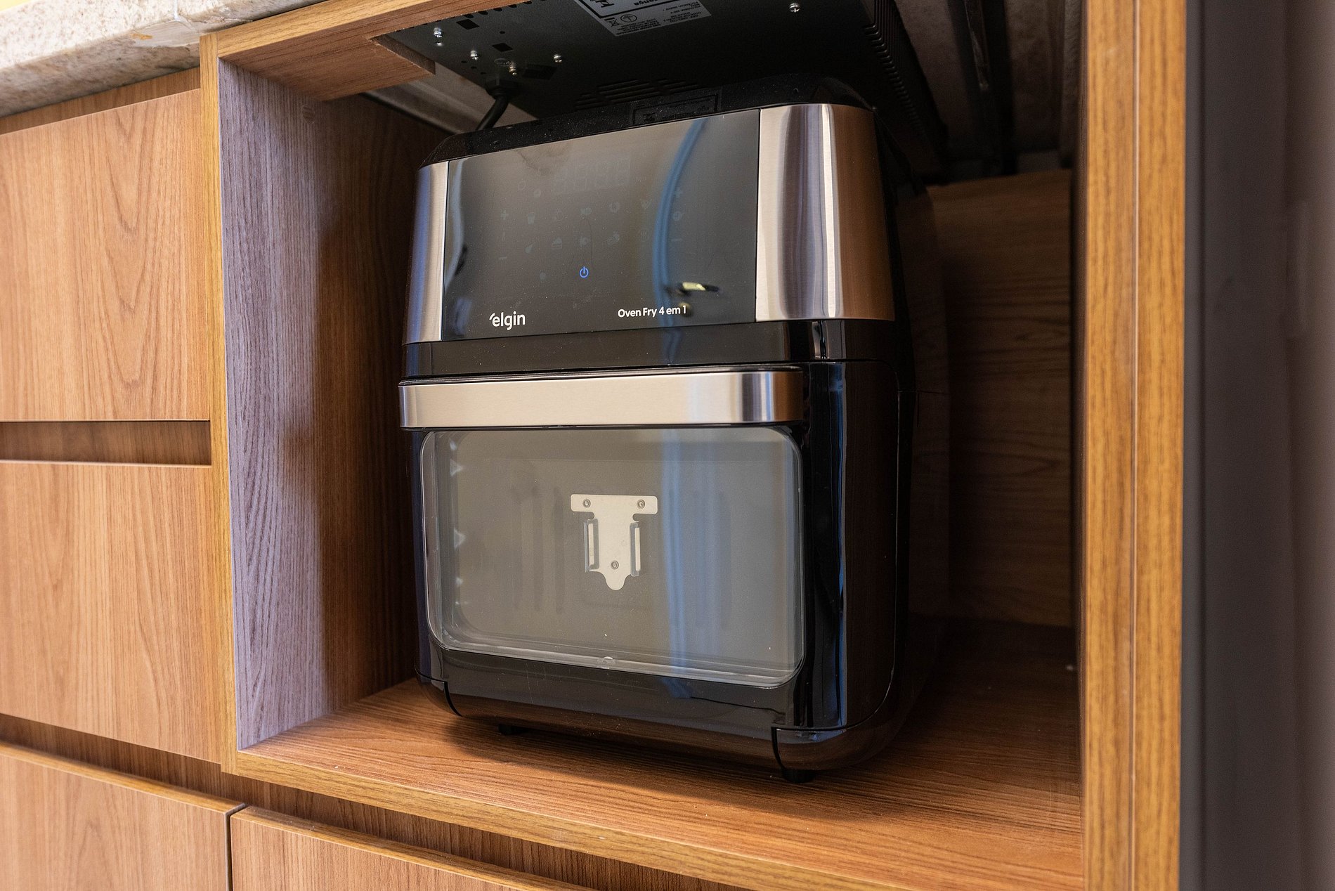 - Cozinha americana com fogão de indução 2 bocas, micro-ondas, cafeteira elétrica e Airfryer