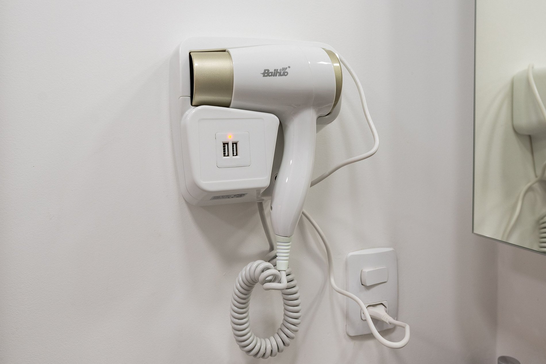 Tomada elétrica próxima à cama